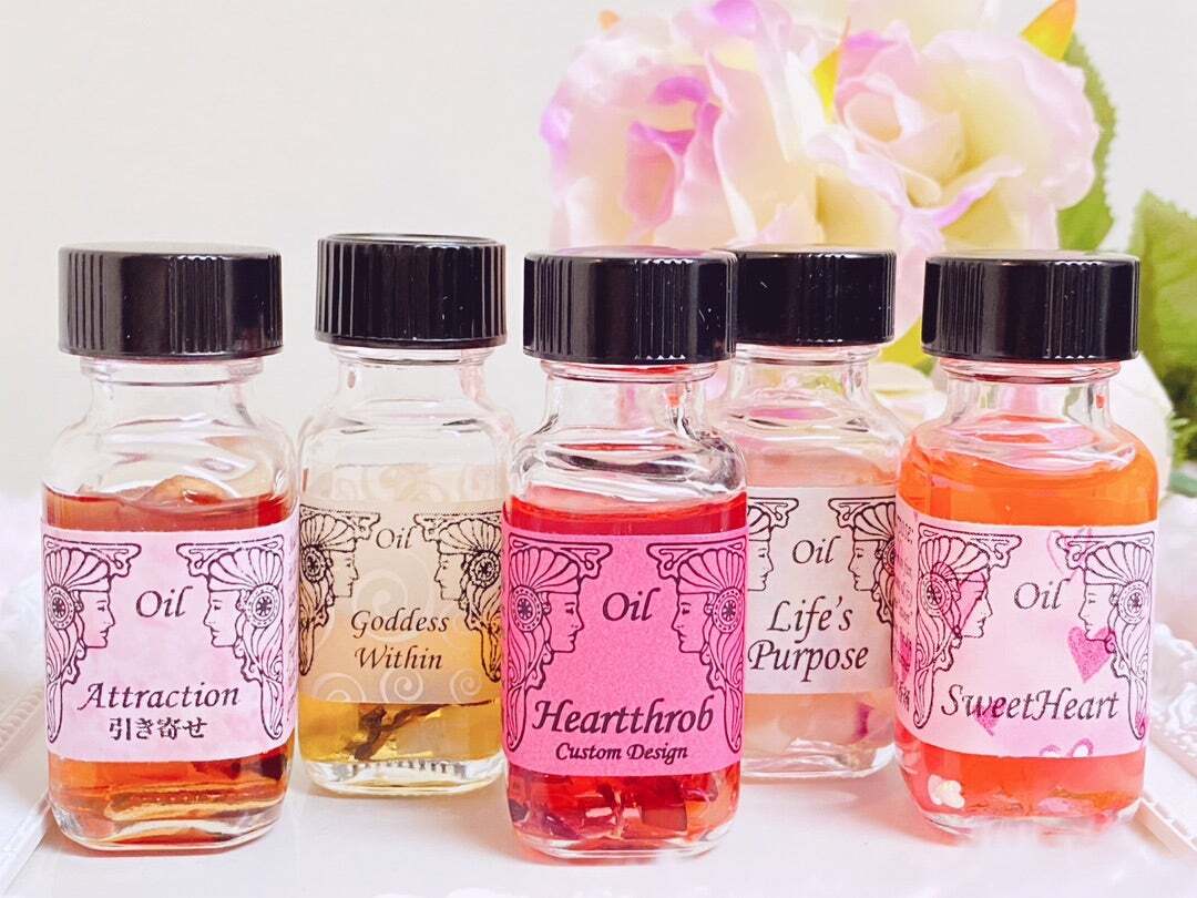 自然由来のエッセンシャルオイルに、ハーブやお花、パワーストーンが漬け込み、エネルギーをたっぷり詰め込んだオイルです